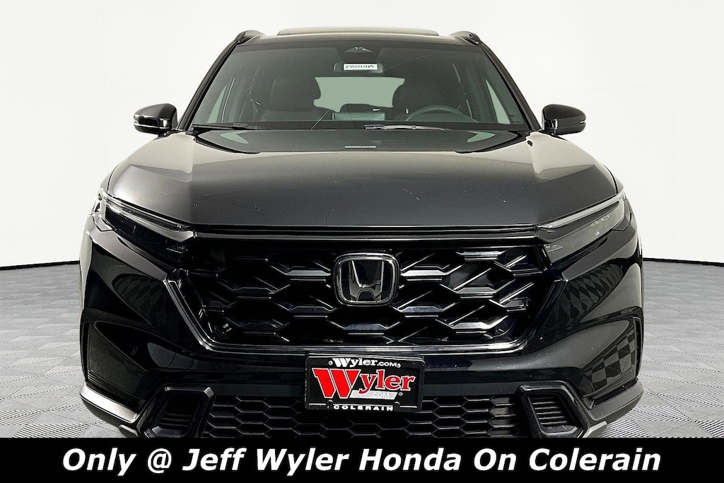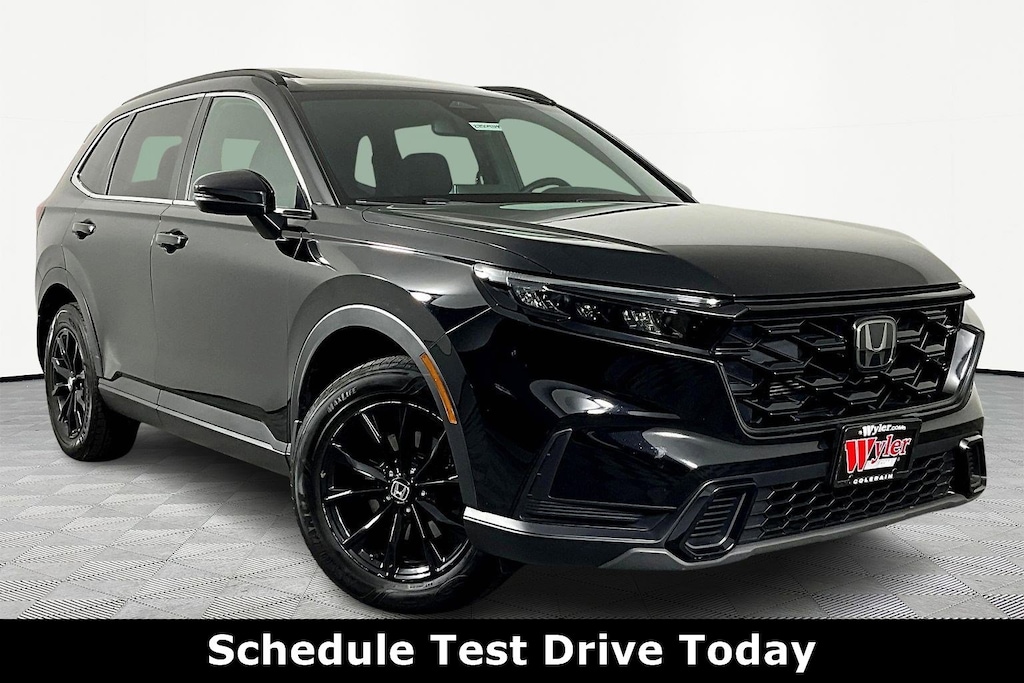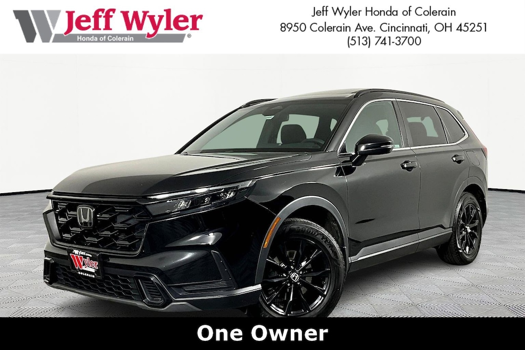 Jeff Wyler Honda of Colerain is pumped up to offer this gorgeous-looking 2023 Honda CR-V Hybrid Sport in Black. Well equipped with: 4-Wheel Disc Brakes, 4.438 Axle Ratio, 6 Speakers, ABS brakes, Adaptive Cruise Control: Adaptive Cruise Control (ACC) with Low-Speed Follow, Air Conditioning, Alloy wheels, Apple CarPlay/Android Auto, Auto High-beam Headlights, Automatic temperature control, Brake assist, Bumpers: body-color, Cloth Seat Trim, Compass, Delay-off headlights, Driver door bin, Driver vanity mirror, Dual front impact airbags, Dual front side impact airbags, Electronic Stability Control, Exterior Parking Camera Rear, Four wheel independent suspension, Front anti-roll bar, Front Bucket Seats, Front Center Armrest, Front dual zone A/C, Front reading lights, Fully automatic headlights, Heated door mirrors, Heated Front Bucket Seats, Heated front seats, Illuminated entry, Knee airbag, Leather Shift Knob, Leather steering wheel, Low tire pressure warning, Occupant sensing airbag, Outside temperature display, Overhead airbag, Overhead console, Panic alarm, Passenger door bin, Passenger vanity mirror, Power door mirrors, Power driver seat, Power moonroof, Power steering, Power windows, Radio data system, Radio: 240-Watt AM/FM Audio System, Rear anti-roll bar, Rear reading lights, Rear seat center armrest, Rear side impact airbag, Rear window defroster, Rear window wiper, Remote keyless entry, Security system, Speed control, Speed-sensing steering, Speed-Sensitive Wipers, Split folding rear seat, Spoiler, Steering wheel mounted audio controls, Telescoping steering wheel, Tilt steering wheel, Traction control, Trip computer, Turn signal indicator mirrors, Variably intermittent wipers, and Wheels: 18" Berlina Black Alloy.