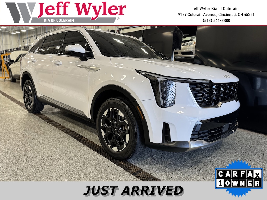 Jeff Wyler Kia of Colerain is delighted to offer this fantastic-looking 2024 Kia Sorento S in Glacial White Pearl. 3rd row seats: split-bench, 4-Wheel Disc Brakes, 4.081 Axle Ratio, 6 Speakers, ABS brakes, Air Conditioning, Alloy wheels, AM/FM radio: SiriusXM, Apple CarPlay & Android Auto, Auto High-beam Headlights, Automatic temperature control, Brake assist, Bumpers: body-color, Carpeted Floor Mats, Delay-off headlights, Driver door bin, Driver vanity mirror, Dual front impact airbags, Dual front side impact airbags, Electronic Stability Control, Emergency communication system: 911 Connect, Exterior Parking Camera Rear, Four wheel independent suspension, Front anti-roll bar, Front Bucket Seats, Front Center Armrest, Front dual zone A/C, Front fog lights, Front reading lights, Fully automatic headlights, Heated door mirrors, Heated Front Bucket Seats, Heated front seats, Illuminated entry, Knee airbag, Leather Shift Knob, Leather steering wheel, Low tire pressure warning, Navigation System, Occupant sensing airbag, Outside temperature display, Overhead airbag, Overhead console, Panic alarm, Passenger door bin, Passenger vanity mirror, Power door mirrors, Power driver seat, Power steering, Power windows, Radio data system, Radio: AM/FM Audio System, Rear anti-roll bar, Rear reading lights, Rear seat center armrest, Rear side impact airbag, Rear window defroster, Rear window wiper, Remote keyless entry, Security system, Smart Key w/ Push Button and Remote Start, Speed control, Speed-sensing steering, Split folding rear seat, Spoiler, Steering wheel mounted audio controls, SynTex Artificial Leather Seat Trim, Tachometer, Telescoping steering wheel, Tilt steering wheel, Traction control, Trip computer, Turn signal indicator mirrors, Variably intermittent wipers, and Wheels: 7.5J x 18" Alloy w/Machine Finish Our PRE-OWNED vehicles are put through a rigorous 167- POINT QUALITY ASSURANCE INSPECTION along with an average amount of over $1,400.00 SPENT to recondition each vehicle so we can be sure to deliver you the highest quality vehicle like you deserve! ***ONLINE PRICE DOES NOT INCLUDE WYLER FAMILY FIRST PACKAGE***