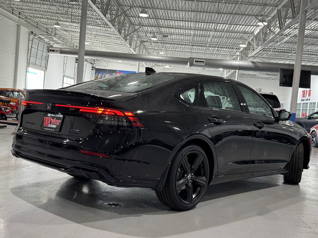 Jeff Wyler Honda Automall is honored to offer this terrific 2026 Honda Accord Hybrid Sport-L in Nh-731p/Crystal Bl. Well equipped with: 2.0L I4 DOHC 16V, 4-Wheel Disc Brakes, 8 Speakers, ABS brakes, Adaptive Cruise Control: Adaptive Cruise Control (ACC) with Low-Speed Follow, Air Conditioning, Alloy wheels, AM/FM radio, Apple CarPlay/Android Auto, Auto High-beam Headlights, Automatic temperature control, Blind Spot Information (BSI) System warning, Brake assist, Bumpers: body-color, Compass, Delay-off headlights, Driver door bin, Driver vanity mirror, Dual front impact airbags, Dual front side impact airbags, Electronic Stability Control, Emergency communication system: HondaLink, Exterior Parking Camera Rear, Four wheel independent suspension, Front anti-roll bar, Front Bucket Seats, Front Center Armrest, Front dual zone A/C, Front reading lights, Fully automatic headlights, Heated Front Bucket Seats, Heated front seats, Illuminated entry, Knee airbag, Lane departure: Lane Keeping Assist System (LKAS) active, Leather Shift Knob, Leather steering wheel, Leather-Trimmed Seat Trim, Low tire pressure warning, Memory seat, Occupant sensing airbag, Outside temperature display, Overhead airbag, Overhead console, Panic alarm, Passenger door bin, Passenger vanity mirror, Power door mirrors, Power driver seat, Power moonroof, Power passenger seat, Power steering, Power windows, Radio data system, Radio: 180-Watt Audio System, Rear anti-roll bar, Rear reading lights, Rear seat center armrest, Rear side impact airbag, Rear window defroster, Remote keyless entry, Security system, Speed control, Speed-sensing steering, Speed-Sensitive Wipers, Split folding rear seat, Spoiler, Steering wheel mounted audio controls, Telescoping steering wheel, Tilt steering wheel, Traction control, Trip computer, Variably intermittent wipers, and Wheels: 19" x 8.5J Matte Berlina Black. 46/41 City/Highway MPGWyler Family First Package Includes: NanoCure Appearance Protection: Exterior & Interior Chemical Sealant Applied to Protect Against Environmental Hazards (7 Year Warranty Coverage). Pulse- Rear end Collision Avoidance System Theft Deterrent Strategy gives you 5 Years of Coverage against vehicle Theft, Offering up to a $5,000 benefit.