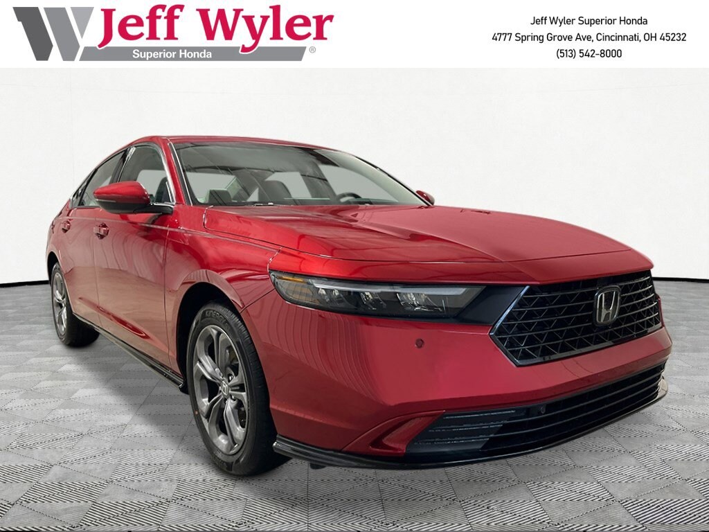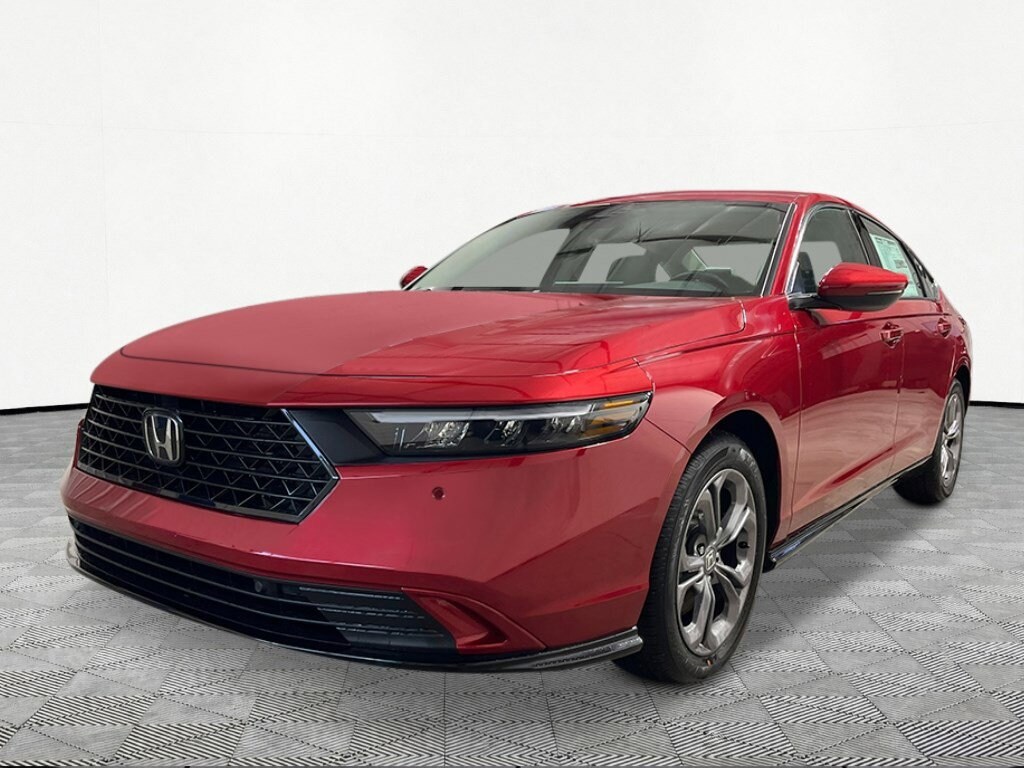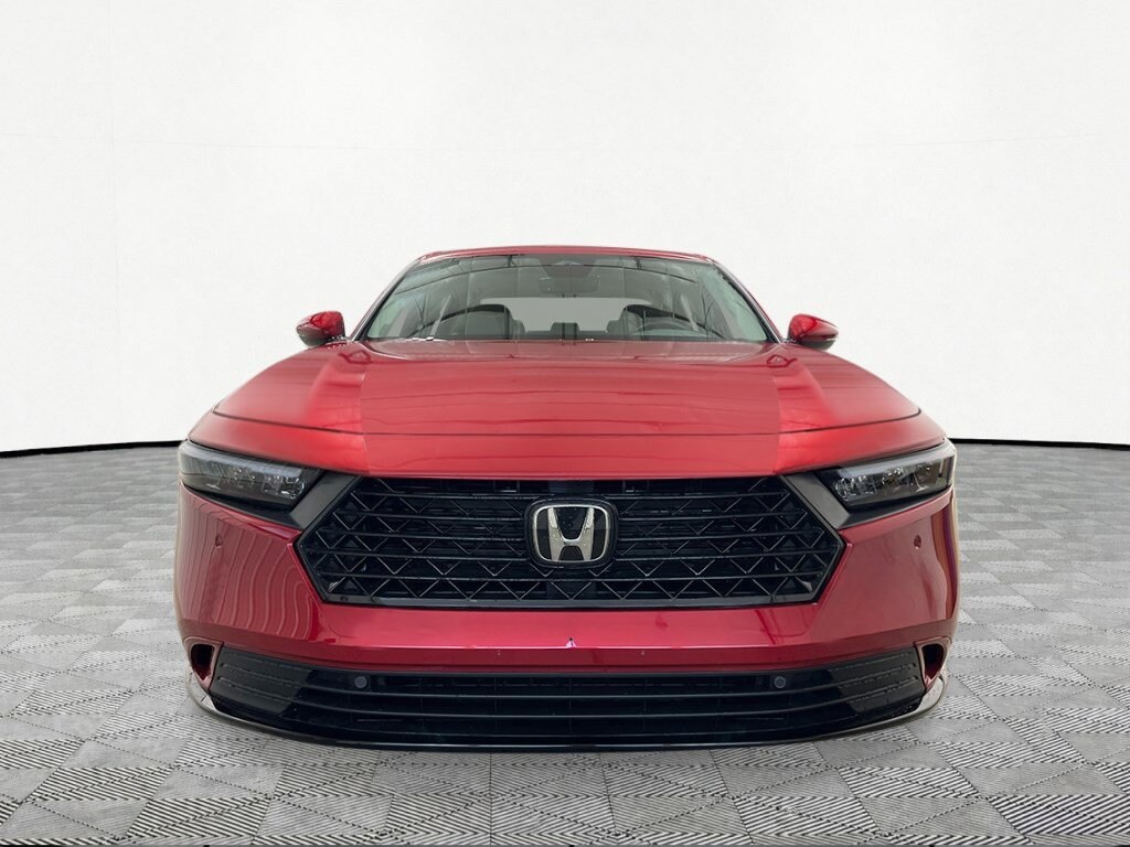 Boasts 44 Highway MPG and 51 City MPG! This Honda Accord Hybrid boasts a Gas/Electric I-4 2.0 L/122 engine powering this Variable transmission. RADIANT RED METALLIC, GRAY, LEATHER-TRIMMED SEAT TRIM, Wheels: 17" x 7.5J Pewter Gray.
