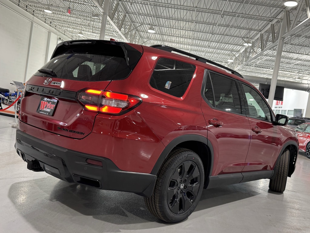 Jeff Wyler Honda Automall is honored to offer this great-looking 2026 Honda Pilot Black Edition in Radiant Red Metallic II. Well equipped with: AWD, 12 Speakers, 3rd row seats: split-bench, 4-Wheel Disc Brakes, ABS brakes, Adaptive Cruise Control: Adaptive Cruise Control (ACC) with Low-Speed Follow, Air Conditioning, Alloy wheels, Apple CarPlay/Android Auto, Auto High-beam Headlights, Auto-dimming door mirrors, Auto-dimming Rear-View mirror, Automatic temperature control, Blind Spot Information (BSI) System warning, Bose Premium Sound System, Brake assist, Bumpers: body-color, Compass, Delay-off headlights, Driver door bin, Driver vanity mirror, Dual front impact airbags, Dual front side impact airbags, Electronic Stability Control, Emergency communication system: HondaLink, Exterior Parking Camera Rear, Four wheel independent suspension, Front anti-roll bar, Front Bucket Seats, Front Center Armrest, Front dual zone A/C, Front fog lights, Front reading lights, Fully automatic headlights, Garage door transmitter: HomeLink, Heads-Up Display, Heated and Ventilated Front Bucket Seats, Heated door mirrors, Heated front seats, Heated rear seats, Heated steering wheel, HondaLink, HondaLink Subscription Services, Illuminated entry, Knee airbag, Lane departure: Lane Keeping Assist System (LKAS) active, Low tire pressure warning, Memory seat, Navigation system: Google Maps, Occupant sensing airbag, Outside temperature display, Overhead airbag, Overhead console, Panic alarm, Passenger door bin, Passenger vanity mirror, Perforated Leather-Trimmed Seat Trim, Power door mirrors, Power driver seat, Power Liftgate, Power moonroof, Power passenger seat, Power steering, Power windows, Radio data system, Rain sensing wipers, Rear air conditioning, Rear anti-roll bar, Rear reading lights, Rear seat center armrest, Rear window defroster, Rear window wiper, Reclining 3rd row seat, Remote keyless entry, Security system, Speed control, Speed-sensing steering, Speed-Sensitive Wipers, Split folding rear seat, Spoiler, Steering wheel mounted audio controls, Tachometer, Telescoping steering wheel, Tilt steering wheel, Traction control, Trip computer, Turn signal indicator mirrors, Variably intermittent wipers, Ventilated front seats, and Wheels: 20" Gloss Black with Black Lug Nuts.Wyler Family First Package Includes: NanoCure Appearance Protection: Exterior & Interior Chemical Sealant Applied to Protect Against Environmental Hazards (7 Year Warranty Coverage). Pulse- Rear end Collision Avoidance System Theft Deterrent Strategy gives you 5 Years of Coverage against vehicle Theft, Offering up to a $5,000 benefit.