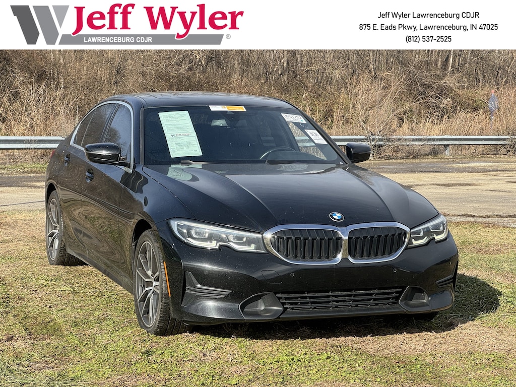 Jeff Wyler Chrysler Dodge Jeep of Lawrenceburg is excited to offer this superb 2020 BMW 3 Series 330i in Jet Black. Connected Package Pro, Convenience Package (Active Blind Spot Detection, Active Driving Assistant, Comfort Access Keyless Entry, LED Headlights w/Cornering Lights, Lumbar Support, Park Distance Control, and SiriusXM Satellite Radio), 10 Speakers, 4-Wheel Disc Brakes, ABS brakes, Air Conditioning, Alloy wheels, AM/FM radio, Apple CarPlay Compatibility, Auto-dimming door mirrors, Auto-dimming Rear-View mirror, Automatic temperature control, BMW Assist eCall, BMW TeleServices, Brake assist, Bumpers: body-color, Compass, Delay-off headlights, Driver door bin, Driver vanity mirror, Dual front impact airbags, Dual front side impact airbags, DVD Area Coding (North America), Electronic Stability Control, Emergency communication system: BMW Assist eCall, Exterior Parking Camera Rear, Four wheel independent suspension, Front anti-roll bar, Front Bucket Seats, Front Center Armrest, Front dual zone A/C, Front reading lights, Fully automatic headlights, Garage door transmitter, Genuine wood console insert, Genuine wood dashboard insert, Hands-Free Bluetooth & USB Audio Connection, HD Radio, Heated door mirrors, Heated Front Seats, Hi-Fi Sound System, Illuminated entry, Leather Shift Knob, Leather steering wheel, Live Cockpit Pro w/Navi, Low tire pressure warning, Memory seat, Navigation, Navigation System, Occupant sensing airbag, Outside temperature display, Overhead airbag, Panic alarm, Passenger door bin, Passenger vanity mirror, Power door mirrors, Power driver seat, Power Front Seats, Power moonroof, Power passenger seat, Power steering, Power windows, Radio Control US, Radio data system, Radio: AM/FM Audio System, Rain sensing wipers, Rear air conditioning, Rear anti-roll bar, Rear reading lights, Rear seat center armrest, Rear window defroster, Remote keyless entry, Satin Aluminum Line Exterior Trim (DISC), Security system, SensaTec Upholstery, Speed control, Speed-sensing steering, Speed-Sensitive Wipers, Split folding rear seat, Sport Seats, Sport steering wheel, Steering wheel mounted audio controls, Tachometer, Telescoping steering wheel, Tilt steering wheel, Traction control, Trip computer, Turn signal indicator mirrors, Variably intermittent wipers, and Wheels: 18" x 7.5" V-Spoke Bi-Color Orbit Grey Our PRE-OWNED vehicles are put through a rigorous 167- POINT QUALITY ASSURANCE INSPECTION along with an average amount of over $1,400.00 SPENT to recondition each vehicle so we can be sure to deliver you the highest quality vehicle like you deserve! ***ONLINE PRICE DOES NOT INCLUDE WYLER FAMILY FIRST PACKAGE*** Stop by 4136 Shelbyville Road to see for yourself, or give us a call @ 502-897-3151 to schedule your test drive! Ask about available certifications.