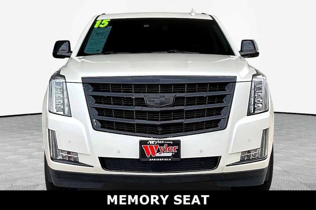 Jeff Wyler Springfield Auto Mall is honored to offer this gorgeous 2015 Cadillac Escalade ESV Premium in White Diamond Tricoat. Well equipped with: Driver Assist Package (Adaptive Full-Speed Range Cruise Control, Automatic Safety Belt Tightening, and Front & Rear Automatic Braking), Driver Awareness Package (Forward Collision Alert and Lane Departure Warning System), Preferred Equipment Group 1SC (3rd Row DVD Screen, Electronic Powered Parking Brake, Illuminated Door Handles, IntelliBeam Headlamps, Lane Change Alert, Power Tilt-Sliding Sunroof w/Express-Open/Close, Rear Cross-Traffic Alert, Rear Seat Entertainment System, Reconfigurable 4-Color Head-Up Display, Second Row Bucket Seats, Side Blind Zone Alert, and VAC Power 17" Disc Brakes), Theft-Deterrent Package (Theft-Deterrent Alarm System, Vehicle Inclination Sensor, and Vehicle Interior Movement Sensor), 16 Speakers, 22" x 9" 7-Spoke Ultra-Bright Aluminum Wheels, 3.23 Axle Ratio, 3rd row seats: split-bench, 4-Wheel Disc Brakes, A/V remote, ABS brakes, Adaptive suspension, Adjustable pedals, Air Conditioning, Alloy wheels, AM/FM radio: SiriusXM, Auto High-beam Headlights, Auto tilt-away steering wheel, Auto-dimming door mirrors, Auto-dimming Rear-View mirror, Auto-leveling suspension, Automatic temperature control, Black Front License Plate Bracket, Bodyside moldings, Bose Centerpoint Surround Sound System, Brake assist, Bumpers: body-color, CD player, Compass, Delay-off headlights, Driver door bin, Driver vanity mirror, Dual front impact airbags, Dual front side impact airbags, DVD-Audio, Electronic Stability Control, Emergency communication system: OnStar Directions & Connections, Engine Block Heater, Exterior Parking Camera Rear, Front anti-roll bar, Front Bucket Seats, Front Center Armrest w/Storage, Front dual zone A/C, Front reading lights, Front wheel independent suspension, Fully automatic headlights, Garage door transmitter, Headphones, Heads-Up Display, Heated & Cooled Front Bucket Seats, Heated door mirrors, Heated front seats, Heated rear seats, Heated steering wheel, Illuminated entry, Leather Seating Surfaces, Leather Shift Knob, Leather steering wheel, Low tire pressure warning, Magnetic Ride Control Suspension, Memory seat, Navigation System, NavTraffic, Occupant sensing airbag, Outside temperature display, Overhead airbag, Overhead console, Panic alarm, Passenger door bin, Passenger vanity mirror, Pedal memory, Power door mirrors, Power driver seat, Power Liftgate, Power moonroof, Power passenger seat, Power steering, Power windows, Power-Retractable Assist Steps, Radio data system, Radio: Cadillac CUE Info/Media Ctrl Sys w/Embd Nav, Rain sensing wipers, Rear air conditioning, Rear anti-roll bar, Rear audio controls, Rear reading lights, Rear window defroster, Rear window wiper, Remote keyless entry, Roof rack: rails only, Security system, SiriusXM Satellite Audio System, Speed control, Split folding rear seat, Spoiler, Steering wheel memory, Steering wheel mounted audio controls, Tachometer, Telescoping steering wheel, Tilt steering wheel, Traction control, Trip computer, Turn signal indicator mirrors, Variably intermittent wipers, Ventilated front seats, Wheel Locks, and Wheels: 22" x 9" 7-Spoke Aluminum. Reviews: * Shop here if you need your SUV to carry up to eight passengers, all of their stuff, and tow up to 8,300 pounds. Not only can you do all that, but youâll look good while doing it. Source: KBB.com * Ample space for up to eight people and their stuff; strong V8 power; stout towing capacity; quiet interior. Source: EdmundsAsk about available certifications. Used vehicles 10 years of age or newer with less than 100,000 miles are eligible for the Wyler Assurance Program, but eligible vehicles must pass our reconditioning process and multi-point inspection. Provided the vehicle passes inspection, vehicles will be eligible for the 6 month/6,000 mile limited warranty. The 6 month/6,000 mile limited warranty is NOT available on AS-IS vehicles, w