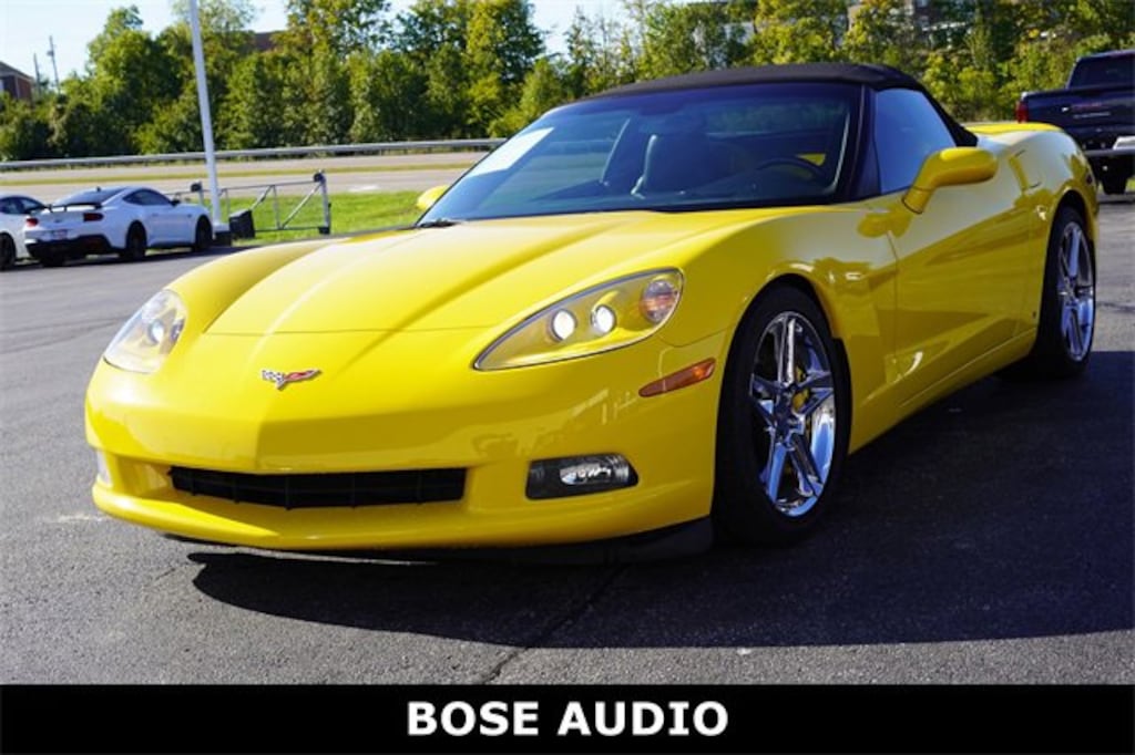 Jeff Wyler Florence Buick GMC is proud to offer this handsome 2006 Chevrolet Corvette in Velocity Yellow Tintcoat. Memory Package, Performance Handling Package (Engine Oil Cooler, Power Steering Cooler, Stiffer Springs, Stiffer Stabilizer Bars, and Transmission Cooler), Preferred Equipment Group 3LT (6-Way Power Front Passenger Seat Adjuster, Cargo Convenience Net, Compass, Driver & Passenger Frontal & Side Impact Airbags, Driver & Passenger Heated Seats, ETR AM/FM Stereo w/6-Disc In-Dash CD Changer/MP3, Head-Up Display, Inside Rear-View Mirror, Manual Tilt/Power Telescoping Steering Column, Outside Auto-Dimming Rear-View Mirror, and Universal Home Remote), 18 x 8.5 Front & 19 x 10.0 Rear Aluminum Wheels, 18 x 8.5 Front & 19 x 10.0 Rear Pntd. Aluminum Wheels, 3.42 Limited Slip Axle Ratio, 4-Wheel Disc Brakes, 7 Speakers, 7-Speaker Sound System Feature, ABS brakes, Air Conditioning, Alloy wheels, AM/FM radio, Automatic temperature control, Bumpers: body-color, CD player, Convertible roof lining, Delay-off headlights, Driver door bin, Driver vanity mirror, Dual front impact airbags, Dual front side impact airbags, Electronic Stability Control, ETR AM/FM Stereo w/CD/MP3/Navigation, Four wheel independent suspension, Front anti-roll bar, Front Bucket Seats, Front Center Armrest, Front dual zone A/C, Front fog lights, Front License Plate Bracket, Front reading lights, Front Sport Bucket Seats, Fully automatic headlights, Glass rear window, Heated door mirrors, High-Intensity Discharge Headlights, Highwear Nuance Perforated Leather Seat Trim, Illuminated entry, Leather Shift Knob, Leather steering wheel, Low tire pressure warning, Occupant sensing airbag, OnStar 1-Year Safe & Sound Service, Outside temperature display, Panic alarm, Passenger door bin, Passenger vanity mirror, Power door mirrors, Power driver seat, Power Folding Convertible Top, Power passenger seat, Power steering, Power windows, Radio data system, Rear anti-roll bar, Rear window defroster, Remote keyless entry, Security system, Speed control, Speed-sensing steering, Sport steering wheel, Tachometer, Tilt steering wheel, Traction control, Trip computer, Variably intermittent wipers, Voltmeter, and Weather band radio Our PRE-OWNED vehicles are put through a rigorous 167- POINT QUALITY ASSURANCE INSPECTION along with an average amount of over $1,400.00 SPENT to recondition each vehicle so we can be sure to deliver you the highest quality vehicle like you deserve! ***ONLINE PRICE DOES NOT INCLUDE WYLER FAMILY FIRST PACKAGE*** Stop by 1154 Burlington Pike Florence KY 41402to see for yourself, or give us a call @ 859-525-8001 to schedule your test drive!