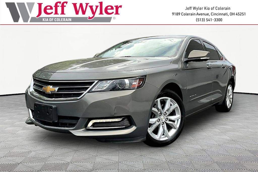 Jeff Wyler Kia of Colerain is pumped up to offer this superb 2019 Chevrolet Impala LT in Pepperdust Metallic. Preferred Equipment Group 1LT, 100-Watt 6-Speaker System, 18" Painted Alloy Wheels, 3.23 Final Drive Axle Ratio, 4-Way Manual Front Passenger Seat Adjuster, 4-Wheel Disc Brakes, 6 Speakers, 8-Way Power Driver Seat Adjuster, 8" Diagonal Color Infotainment Display, 800 Cold-Cranking Amps Battery, ABS brakes, Air Conditioning, Alloy wheels, AM/FM radio: SiriusXM, Apple CarPlay/Android Auto, Automatic temperature control, Brake assist, Bumpers: body-color, Compass, Delay-off headlights, Driver door bin, Driver Power Lumbar Seat Adjuster, Driver vanity mirror, Dual front impact airbags, Dual front side impact airbags, Electronic Stability Control, Emergency communication system: OnStar and Chevrolet connected services capable, Exterior Parking Camera Rear, Four wheel independent suspension, Front anti-roll bar, Front Bucket Seats, Front Center Armrest, Front dual zone A/C, Front License Plate Bracket, Front Passenger Power Lumbar Seat Adjuster, Front reading lights, Fully automatic headlights, Heated door mirrors, Illuminated entry, Knee airbag, Low tire pressure warning, Occupant sensing airbag, Overhead airbag, Overhead console, Panic alarm, Passenger door bin, Passenger vanity mirror, Power door mirrors, Power driver seat, Power steering, Power windows, Premium Cloth/Leatherette Seat Trim, Radio data system, Radio: Chevrolet Infotainment System AM/FM Stereo, Rear anti-roll bar, Rear reading lights, Rear seat center armrest, Rear side impact airbag, Rear window defroster, Remote keyless entry, Security system, SiriusXM Radio, Speed control, Speed-sensing steering, Split folding rear seat, Steering wheel mounted audio controls, Stop-Start Engine Control System, Tachometer, Telescoping steering wheel, Tilt steering wheel, Traction control, Trip computer, Turn signal indicator mirrors, USB Port, and Variably intermittent wipers Our PRE-OWNED vehicles are put through a rigorous 167- POINT QUALITY ASSURANCE INSPECTION along with an average amount of over $1,400.00 SPENT to recondition each vehicle so we can be sure to deliver you the highest quality vehicle like you deserve! ***ONLINE PRICE DOES NOT INCLUDE WYLER FAMILY FIRST PACKAGE***