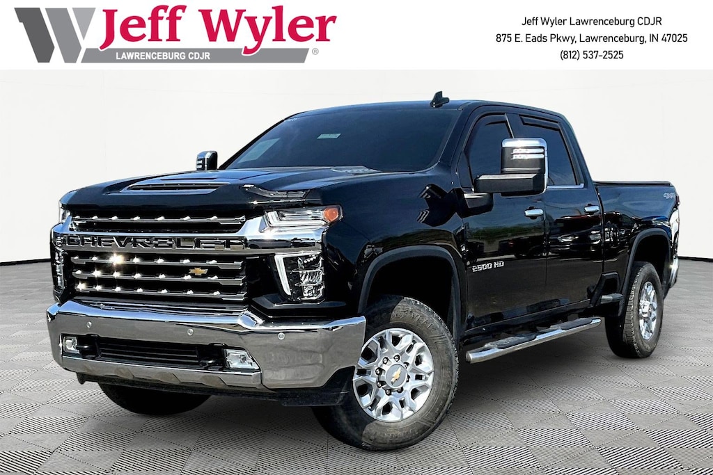 Jeff Wyler Chrysler Dodge Jeep of Lawrenceburg is very proud to offer this rock solid 2022 Chevrolet Silverado 2500HD LTZ in Black. LTZ Convenience Package (2 USB Ports (1st Row), 2 USB Ports & 1 SD Card Reader, Floor-Mounted Center Console, Front Bucket Seats, Heated 2nd Row Outboard Seats, LED Cargo Area Lighting, Power Sliding Rear Window w/Defogger, Universal Home Remote, and Ventilated Driver & Front Passenger Seats), LTZ Plus Package, Preferred Equipment Group 1LZ (12-Volt Rear Auxiliary Power Outlet, 120-Volt Bed Mounted Power Outlet, 120-Volt Instrument Panel Power Outlet, 170 Amp Alternator, 2-Speed Active Electronic AutoTrac Transfer Case, 4.2" Diagonal Color Display Driver Info Center, Advanced Trailering System, Auto-Dimming Inside Rear-View Mirror, Bluetooth® For Phone, Chevrolet Connected Access Capable, Chrome Front Grille, Chrome Mirror Caps, Color-Keyed Carpeting Floor Covering, Compass, Deep-Tinted Glass, Dual Charge-Only USB Ports (2nd Row), Electric Rear-Window Defogger, Electrical Lock Control Steering Column, Electronic Cruise Control w/Set & Resume Speed, EZ Lift Power Lock & Release Tailgate, Front LED Fog Lamps, Front Rubberized Vinyl Floor Mats, HD Rear Vision Camera, Heated & Auto-Dim Pwr Vertical Trailering Mirrors, Heated Steering Wheel, Integrated Trailer Brake Controller, Keyless Open & Start, Leather-Wrapped Steering Wheel, Manual Tilt & Telescoping Steering Column, OnStar & Chevrolet Connected Services Capable, Power Door Locks, Power Front Windows w/Driver Express Up/Down, Power Front Windows w/Passenger Express Up/Down, Power Rear Windows w/Express Down, Rear Rubberized Vinyl Floor Mats, Rear Wheelhouse Liners, Remote Vehicle Starter System, Standard Tailgate, Steering Wheel Audio Controls, Unauthorized Entry Theft-Deterrent System, Wi-Fi Hotspot Capable, and Wireless Phone Projection), Safety Package (Lane Change Alert w/Side Blind Zone Alert, Rear Cross Traffic Alert, and Ultrasonic Front & Rear Park Assist), Suspension Package, Up-Level Rear Seat w/Storage Package, 6-Speed Automatic, 4WD, Jet Black Leather, 10-Way Power Driver Seat Adjuster w/Lumbar, 10-Way Power Passenger Seat Adjuster w/Lumbar, 3.73 Rear Axle Ratio, 4-Wheel Disc Brakes, 6 Speakers, 6-Speaker Audio System, 720 Cold-Cranking Amps Heavy-Duty Battery, ABS brakes, Air Conditioning, Alloy wheels, AM/FM radio: SiriusXM with 360L, Auto-dimming door mirrors, Auto-dimming Rear-View mirror, Automatic temperature control, Brake assist, Bumpers: chrome, Delay-off headlights, Driver door bin, Driver Memory, Driver vanity mirror, Dual front impact airbags, Dual front side impact airbags, Electronic Stability Control, Front 40/20/40 Split-Bench Seats w/Lockable Storage, Front anti-roll bar, Front Center Armrest w/Storage, Front dual zone A/C, Front fog lights, Front reading lights, Front wheel independent suspension, Fully automatic headlights, Heated door mirrors, Heated Driver & Front Outboard Passenger Seating, Heated front seats, Heated steering wheel, Hitch Guidance w/Hitch View, Illuminated entry, Low tire pressure warning, Memory seat, Occupant sensing airbag, Outside temperature display, Overhead airbag, Overhead console, Panic alarm, Passenger door bin, Passenger vanity mirror, Perf Leather-Appointed Front Outboard Seat Trim, Power door mirrors, Power driver seat, Power passenger seat, Power steering, Power windows, Premium audio system: Chevrolet Infotainment 3 Plus, Pwr Up/Down Tailgate Function w/Pwr Lock & Release, Radio: Chevrolet Infotainment 3 Plus System, Rear reading lights, Rear seat center armrest, Rear step bumper, Rear window defroster, Remote keyless entry, Security system, SiriusXM w/360L, Speed control, Speed-sensing steering, Split folding rear seat, Steering wheel mounted audio controls, Tachometer, Telescoping steering wheel, Tilt steering wheel, Traction control, Trip computer, Turn signal indicator mirrors, Variably intermittent wipers, Voltmeter, and Wheels: 18" Machined Alum w/Silver Painted Accents Our