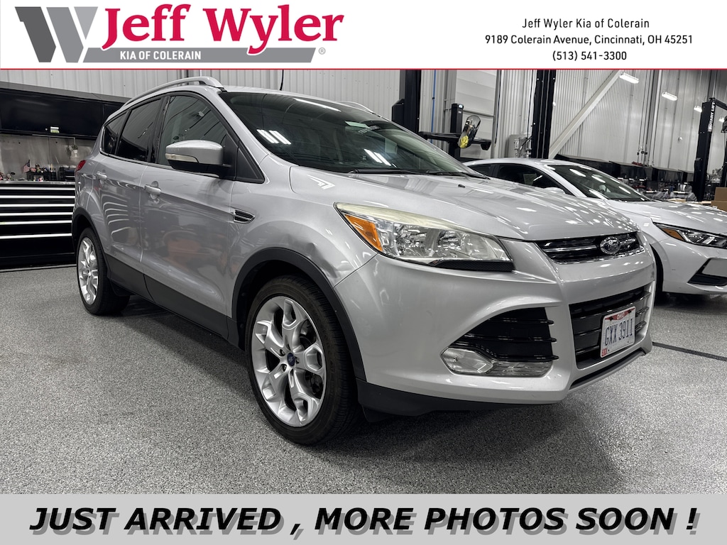 Jeff Wyler Kia of Colerain is very proud to offer this great 2014 Ford Escape Titanium in Ingot Silver Metallic. Equipment Group 400A, 10 Speakers, 3.21 Axle Ratio, 4-Wheel Disc Brakes, ABS brakes, Air Conditioning, Alloy wheels, AM/FM radio: SiriusXM, Auto-dimming Rear-View mirror, Automatic temperature control, Brake assist, Bumpers: body-color, CD player, Compass, Delay-off headlights, Driver door bin, Driver vanity mirror, Dual front impact airbags, Dual front side impact airbags, Electronic Stability Control, Exterior Parking Camera Rear, Four wheel independent suspension, Front anti-roll bar, Front Bucket Seats, Front Center Armrest, Front dual zone A/C, Front fog lights, Front reading lights, Fully automatic headlights, Garage door transmitter, Heated door mirrors, Heated front seats, Heated Leather-Trimmed Buckets w/60/40 Rear Seat, Illuminated entry, Knee airbag, Leather Shift Knob, Low tire pressure warning, Memory seat, Navigation System, Occupant sensing airbag, Outside temperature display, Overhead airbag, Overhead console, Panic alarm, Passenger door bin, Passenger vanity mirror, Power door mirrors, Power driver seat, Power Liftgate, Power steering, Power windows, Radio data system, Radio: AM/FM Single CD/MP3, Rear anti-roll bar, Rear Parking Sensors, Rear reading lights, Rear seat center armrest, Rear window defroster, Rear window wiper, Remote keyless entry, Roof rack: rails only, Security system, Speed control, Speed-sensing steering, Split folding rear seat, Steering wheel mounted audio controls, SYNC w/MyFord Touch & SYNC Services, Tachometer, Telescoping steering wheel, Tilt steering wheel, Traction control, Trip computer, Turn signal indicator mirrors, Variably intermittent wipers, Wheels: 18" Sparkle Nickel Painted Aluminum, and Wheels: 19" Alloy Luster Nickel Our PRE-OWNED vehicles are put through a rigorous 167- POINT QUALITY ASSURANCE INSPECTION along with an average amount of over $1,400.00 SPENT to recondition each vehicle so we can be sure to deliver you the highest quality vehicle like you deserve! ***ONLINE PRICE DOES NOT INCLUDE WYLER FAMILY FIRST PACKAGE***