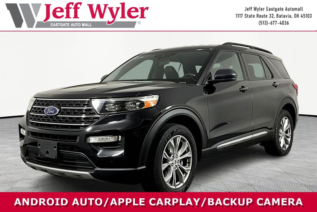 Jeff Wyler Eastgate Auto Mall is pumped up to offer this gorgeous-looking 2020 Ford Explorer XLT in Black. Well equipped with: Comfort Package (1st & 2nd Row Heated Seats and Heated Steering Wheel), Equipment Group 202A (ActiveX Captain's Chairs, LED Fog Lamps, and Remote Start System), Ford Co-Pilot360 Assist+ (Evasive Steering Assist, Intelligent Adaptive Cruise Control, and Voice-Activated Touchscreen Navigation System), 20" Premium Painted Aluminum Wheels, 3.58 Non-Limited-Slip Rear Axle Ratio, 3rd row seats: bench, 4-Wheel Disc Brakes, 6 Speakers, ABS brakes, Air Conditioning, Alloy wheels, AM/FM radio: SiriusXM, AM/FM Stereo, Auto High-beam Headlights, Automatic temperature control, Brake assist, Bumpers: body-color, Compass, Delay-off headlights, Driver door bin, Driver vanity mirror, Dual front impact airbags, Dual front side impact airbags, Electronic Stability Control, Emergency communication system: SYNC 3 911 Assist, Exterior Parking Camera Rear, FordPass Connect, Four wheel independent suspension, Front anti-roll bar, Front Bucket Seats, Front Center Armrest, Front dual zone A/C, Front reading lights, Fully automatic headlights, Heated door mirrors, Illuminated entry, Knee airbag, Leather steering wheel, Low tire pressure warning, Occupant sensing airbag, Outside temperature display, Overhead airbag, Overhead console, Panic alarm, Passenger door bin, Passenger vanity mirror, Power door mirrors, Power driver seat, Power Liftgate, Power passenger seat, Power steering, Power windows, Rear air conditioning, Rear anti-roll bar, Rear reading lights, Rear window defroster, Rear window wiper, Remote keyless entry, Roof rack: rails only, Security system, Speed control, Speed-sensing steering, Speed-Sensitive Wipers, Split folding rear seat, Spoiler, Steering wheel mounted audio controls, SYNC 3 Communications & Entertainment System, SYNC 3/Apple CarPlay/Android Auto, Tachometer, Telescoping steering wheel, Tilt steering wheel, Traction control, Trip computer, Unique Cloth Captain's Chairs, Variably intermittent wipers, and Wheels: 18" 5-Spoke Sparkle Silver-Painted Alum. Awards: * 2020 KBB.com 10 Best SUVs Worth Waiting For * 2020 KBB.com 10 Favorite New-for-2020 Cars Ask about available certifications. Used vehicles 10 years of age or newer with less than 100,000 miles are eligible for the Wyler Assurance Program, but eligible vehicles must pass our reconditioning process and multi-point inspection. Provided the vehicle passes inspection, vehicles will be eligible for the 6 month/6,000 mile limited warranty. The 6 month/6,000 mile limited warranty is NOT available on AS-IS vehicles, wholesale vehicles, lease buyback/pass-thru vehicles or un-inspected vehicles. Note that this program can also apply to vehicles where the remaining factory coverage is less than 6 months or 6,000 miles. Please check the Federal Trade Commission (FTC) Buyers guide on the vehicle for full details as to whether or not warranty coverage may apply. Contact Dealer for additional details. The Wyler Assurance 6 month/6,000 Mile limited warranty ends 6 months from the date of the Retail Purchase Agreement (BUYERS ORDER) or when the vehicle's odometer registers 6,000 additional miles to the mileage listed on the BUYERS ORDER, whichever comes first. Your Deductible - The warranty holder on your contract pays the first $100 of each covered repair.