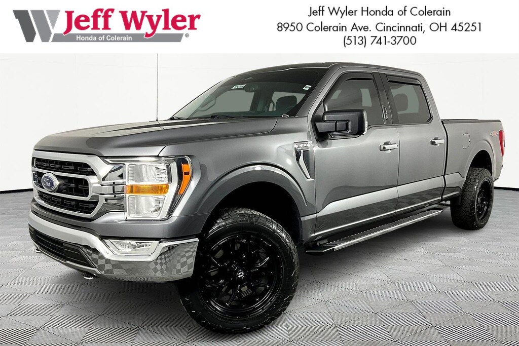Jeff Wyler Honda of Colerain is proud to offer this outstanding 2021 Ford F-150 XLT in Gray Metallic. Well equipped with: Equipment Group 301A Mid (8-Way Power Driver's Seat w/Power Lumbar, 8" Productivity Screen in Instrument Cluster, Auto-Dimming Rear-View Mirror, Class IV Trailer Hitch Receiver, Dual Zone Automatic Temperature Control, Leather-Wrapped Steering Wheel, Power Glass Heated Sideview Mirrors, Radio: AM/FM SiriusXM w/360L, Rear Under-Seat Storage, SecuriCode Drivers Side Keyless-Entry Keypad, and SYNC 4 w/Enhanced Voice Recognition), Trailer Tow Package (Integrated Trailer Brake Controller and Pro Trailer Backup Assist), XLT Chrome Appearance Package (2-Bar Style Grille w/Chrome 2 Minor Bars, Chrome Door & Tailgate Handles w/Body-Color Bezel, Chrome Single-Tip Exhaust, Chrome Step Bars, and Wheels: 18" Chrome-Like PVD), 3.31 Axle Ratio, 4-Wheel Disc Brakes, 6 Speakers, ABS brakes, Air Conditioning, Alloy wheels, AM/FM radio, Auto High-beam Headlights, BoxLink, Brake assist, Bumpers: chrome, Cloth 40/20/40 Front Seat, Compass, Connected Built-In Navigation, Delay-off headlights, Driver door bin, Driver vanity mirror, Dual front impact airbags, Dual front side impact airbags, Electronic Stability Control, Emergency communication system: SYNC 4 911 Assist, Exterior Parking Camera Rear, Front anti-roll bar, Front Center Armrest w/Storage, Front fog lights, Front License Plate Bracket, Front reading lights, Front wheel independent suspension, Fully automatic headlights, Heated door mirrors, Illuminated entry, Low tire pressure warning, Occupant sensing airbag, Outside temperature display, Overhead airbag, Overhead console, Panic alarm, Passenger door bin, Passenger vanity mirror, Power door mirrors, Power steering, Power windows, Radio data system, Radio: AM/FM Stereo w/6 Speakers, Rear reading lights, Rear step bumper, Rear window defroster, Remote keyless entry, Security system, Speed control, Speed-sensing steering, Split folding rear seat, Steering wheel mounted audio controls, SYNC 4, Tachometer, Telescoping steering wheel, Tilt steering wheel, Traction control, Trip computer, Variably intermittent wipers, Voltmeter, and Wheels: 17" Silver Painted Aluminum.