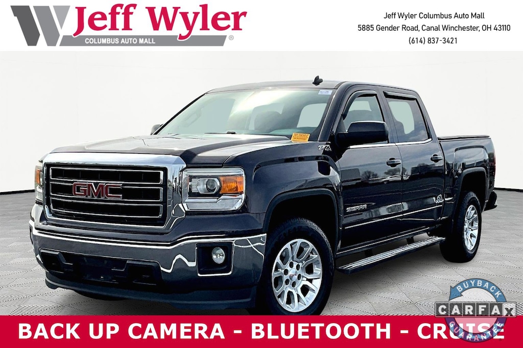 2014 GMC Sierra 1500 Iridium Metallic EcoTec3 5.3L V8 Flex Fuel 6-Speed Automatic Electronic with Overdrive SLE 4WD Priced below KBB Fair Purchase Price! 6-Speed Automatic Electronic with Overdrive, 4WD, Black Cloth. Clean CARFAX.Odometer is 33925 miles below market average!Awards: * 2014 KBB.com Brand Image AwardsCome visit the all new Jeff Wyler Chevrolet of Columbus the official Home of the Fresh Start Program! See how easy it is drive your new vehicle home today.Reviews: * New, more fuel-efficient engines; improved interior; quiet highway ride. Source: Edmunds * The 2014 Sierraâs innovative powertrains and handsome aesthetics should appeal to longtime GMC fans and tempt buyers new to the brand. In just one of many "mine is bigger" battles in the half-ton truck market, the 2014 Sierraâs 12,000-pound max tow rating is expected to be king at least for now. Source: KBB.com