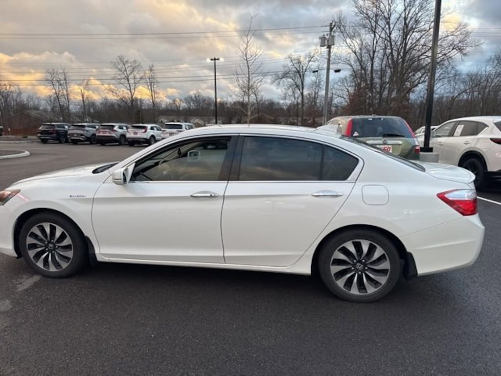 Jeff Wyler Eastgate Auto Mall is very proud to offer this charming 2014 Honda Accord Hybrid in White. Well equipped with: 160-Watt AM/FM/CD Audio System, 17" Alloy Wheels, 4-Wheel Disc Brakes, 6 Speakers, ABS brakes, Air Conditioning, Alloy wheels, AM/FM radio, Automatic temperature control, Bio-Fabric Seat Trim, Brake assist, Bumpers: body-color, CD player, Delay-off headlights, Driver door bin, Driver vanity mirror, Dual front impact airbags, Dual front side impact airbags, Electronic Stability Control, Exterior Parking Camera Rear, Four wheel independent suspension, Front anti-roll bar, Front Bucket Seats, Front Center Armrest, Front dual zone A/C, Front reading lights, Fully automatic headlights, Heated door mirrors, Illuminated entry, Low tire pressure warning, Occupant sensing airbag, Outside temperature display, Overhead airbag, Overhead console, Panic alarm, Passenger door bin, Passenger vanity mirror, Power door mirrors, Power driver seat, Power steering, Power windows, Radio data system, Rear anti-roll bar, Rear seat center armrest, Rear window defroster, Remote keyless entry, Security system, Speed control, Speed-sensing steering, Speed-Sensitive Wipers, Spoiler, Steering wheel mounted audio controls, Tachometer, Telescoping steering wheel, Tilt steering wheel, Traction control, Trip computer, Turn signal indicator mirrors, and Variably intermittent wipers. Clean CARFAX. Reviews: * Beyond its history of reliability and high resale value, the Accord is now more varied than ever. Whether you want a no-fuss and highly economical sedan, a sporty V6-powered coupe or a hybrid that attains 50 mpg in the city, the 2014 Accord offers something for everyone. Source: KBB.com * Excellent fuel economy; strong acceleration; roomy and high-quality interior; responsive handling; user-friendly interior controls. Source: EdmundsAwards: * Green Car Journal 2014 Green Car of the Year * 2014 KBB.com Brand Image AwardsKelley Blue Book Brand Image Awards are based on the Brand Watch(tm) study from Kelley Blue Book Market Intelligence. Award calculated among non-luxury shoppers. For more information, visit www.kbb.com. Kelley Blue Book is a registered trademark of Kelley Blue Book Co., Inc.Based on 2017 EPA mileage ratings. Use for comparison purposes only. Your mileage will vary depending on how you drive and maintain your vehicle, driving conditions and other factors. Ask about available certifications. Used vehicles 10 years of age or newer with less than 100,000 miles are eligible for the Wyler Assurance Program, but eligible vehicles must pass our reconditioning process and multi-point inspection. Provided the vehicle passes inspection, vehicles will be eligible for the 6 month/6,000 mile limited warranty. The 6 month/6,000 mile limited warranty is NOT available on AS-IS vehicles, wholesale vehicles, lease buyback/pass-thru vehicles or un-inspected vehicles. Note that this program can also apply to vehicles where the remaining factory coverage is less than 6 months or 6,000 miles. Please check the Federal Trade Commission (FTC) Buyers guide on the vehicle for full details as to whether or not warranty coverage may apply. Contact Dealer for additional details. The Wyler Assurance 6 month/6,000 Mile limited warranty ends 6 months from the date of the Retail Purchase Agreement (BUYERS ORDER) or when the vehicle's odometer registers 6,000 additional miles to the mileage listed on the BUYERS ORDER, whichever comes first. Your Deductible - The warranty holder on your contract pays the first $100 of each covered repair.
