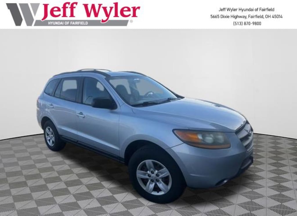 Jeff Wyler Hyundai of Fairfield is honored to offer this gorgeous 2009 Hyundai Santa Fe GLS in Radiant Silver Metallic. Well equipped with: Option Group 01 (4-Wheel Disc Brakes w/ABS, Active Front Seat Head Restraints w/Tilt Feature, Advanced Front Airbags, Air Conditioning, Cruise Control, Electronic Stability Control, Illuminated Sun Visors, Manual Folding Outside Mirrors, Power Door/Tailgate Locks, Power Windows, Remote Keyless Entry System w/Alarm, Roof Rack Side Rails, Tilt & Telescopic Steering Wheel, Tire Pressure Monitoring System, and Woodgrain Trim), Gray Cloth, Android Auto, Apple CarPlay, CALL NOW FOR YOUR VIP APPOINTMENT 513-870-9800, FULLY SERVICED w/RECORDS, GUARANTEED FINANCING!! NO MATTER YOUR SITUATION WE CAN GET AN APPROVAL!!, THE #1 Volume dealer in the region! Come see why for yourself Today!!, WE PAY MORE FOR YOUR TRADE!!, 16" Steel Wheels, 4-Wheel Disc Brakes, 5-Passenger Seating, 6 Speakers, ABS brakes, AM/FM radio: XM, AM/FM/CD/MP3 Audio System, Anti-whiplash front head restraints, Brake assist, Bumpers: body-color, Carpeted Floor Mats (5-Passenger), CD player, Deluxe Cloth Seat Trim, Driver door bin, Driver vanity mirror, Dual front impact airbags, Dual front side impact airbags, Four wheel independent suspension, Front anti-roll bar, Front Bucket Seats, Front Center Armrest w/Storage, Front reading lights, Illuminated entry, Low tire pressure warning, Multi-Adjustable Front Bucket Seats, Occupant sensing airbag, Overhead airbag, Overhead console, Panic alarm, Passenger door bin, Passenger vanity mirror, Power door mirrors, Power steering, Power windows, Rear anti-roll bar, Rear Privacy Glass, Rear seat center armrest, Rear window defroster, Rear window wiper, Remote keyless entry, Roof rack: rails only, Security system, Speed control, Speed-sensing steering, Split folding rear seat, Tachometer, Telescoping steering wheel, Tilt steering wheel, Traction control, Traction Control System, Variably intermittent wipers, and XM Satellite Radio. Reviews: * If getting the most for your money matters, the 2009 Hyundai Santa Fe might be the SUV for you. The Korean manufacturers have improved quality over the years but still have to entice buyers with good value and an excellent warranty the Santa Fe has both. Source: KBB.comTO CHECK ON THE AVAILABILITY OF THIS VEHICLE REACH OUT TO ONE OF OUR TEAM MEMBERS!! ALSO SHOP ONLINE AT https://www.jeffwylerhyundaioffairfield.com/ Proudly Serving: Cincinnati, Dayton, Columbus, Louisville, Lexington, Indianapolis, Hamilton, Florence, Alexandria, Beavercreek, Springdale, West Chester, Monroe, Fairfield, Kenwood, Newport and all of greater Cincinnati Ohio, Indiana, and Northern Kentucky.