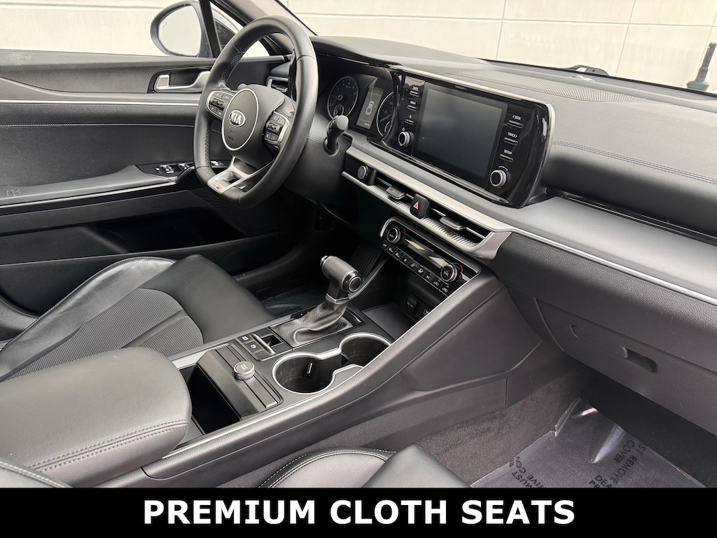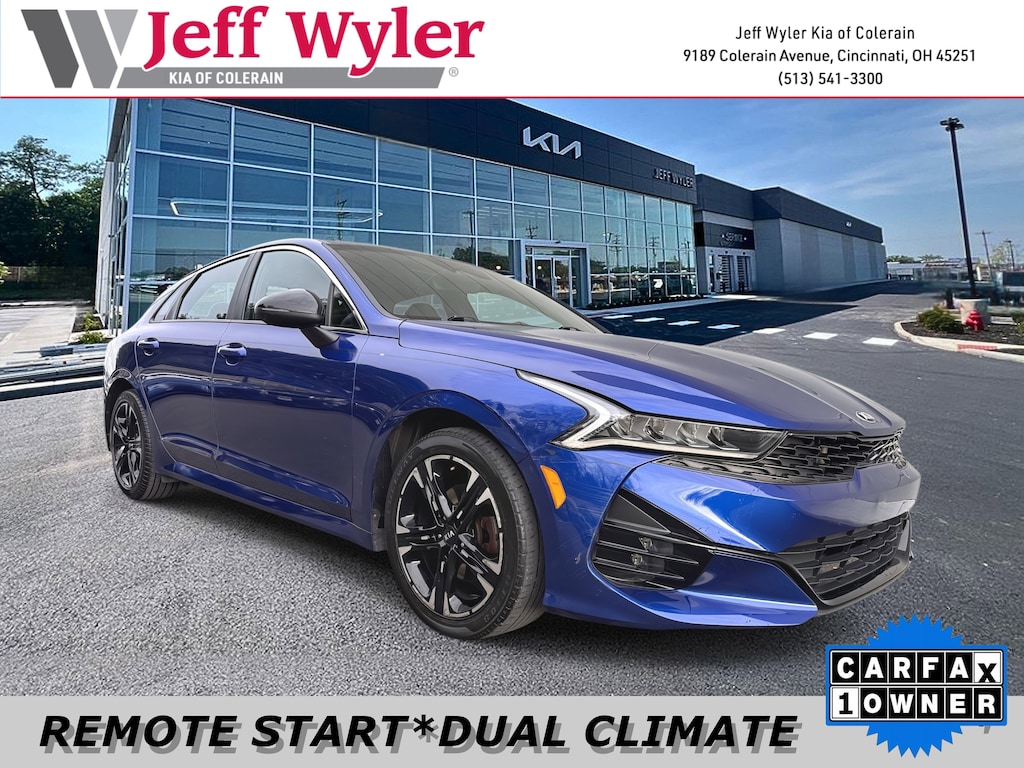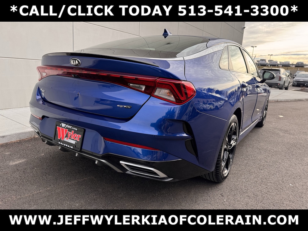 Jeff Wyler Kia of Colerain is honored to offer this superb-looking 2021 Kia K5 GT-Line in Sapphire Blue. 4-Wheel Disc Brakes, 6 Speakers, ABS brakes, Air Conditioning, Alloy wheels, AM/FM radio, Apple CarPlay & Android Auto, Auto High-beam Headlights, Automatic temperature control, Brake assist, Bumpers: body-color, Cargo Mat, Carpeted Floor Mats, Cloth/Leatherette Seat Trim, Delay-off headlights, Driver door bin, Driver vanity mirror, Dual front impact airbags, Dual front side impact airbags, Electronic Stability Control, Four wheel independent suspension, Front anti-roll bar, Front Bucket Seats, Front Center Armrest, Front dual zone A/C, Front fog lights, Front reading lights, Fully automatic headlights, Heated door mirrors, Illuminated entry, Knee airbag, Low tire pressure warning, Occupant sensing airbag, Outside temperature display, Overhead airbag, Overhead console, Panic alarm, Passenger door bin, Passenger vanity mirror, Power door mirrors, Power driver seat, Power steering, Power windows, Radio data system, Radio: AM/FM/MP3 Audio System, Rear anti-roll bar, Rear seat center armrest, Rear side impact airbag, Rear window defroster, Remote keyless entry, Security system, Speed control, Speed-sensing steering, Split folding rear seat, Spoiler, Sport steering wheel, Steering wheel mounted audio controls, Tachometer, Telescoping steering wheel, Tilt steering wheel, Traction control, Trip computer, Turn signal indicator mirrors, Variably intermittent wipers, and Wheels: 7.5J x 18" Graphite Machined Finish Alloy Our PRE-OWNED vehicles are put through a rigorous 167- POINT QUALITY ASSURANCE INSPECTION along with an average amount of over $1,400.00 SPENT to recondition each vehicle so we can be sure to deliver you the highest quality vehicle like you deserve! ***ONLINE PRICE DOES NOT INCLUDE WYLER FAMILY FIRST PACKAGE***
