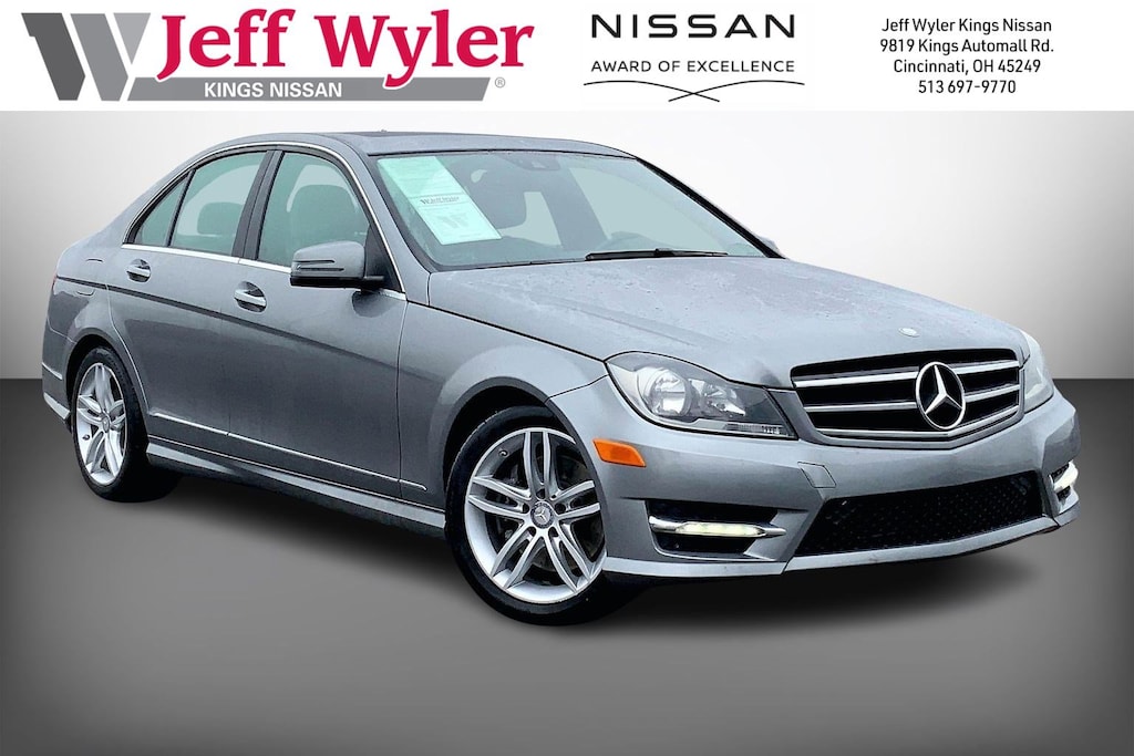 Jeff Wyler Kings Nissan is pumped up to offer this great 2014 Mercedes-Benz C-Class C 300 in Silver. Well equipped with: 4MATIC®, 4-Wheel Disc Brakes, 8 Speakers, ABS brakes, Air Conditioning, Alloy wheels, AM/FM radio, Anti-whiplash front head restraints, Auto-dimming door mirrors, Auto-dimming Rear-View mirror, Automatic temperature control, Bodyside moldings, Brake assist, Bumpers: body-color, CD player, Child-Seat-Sensing Airbag, Compass, Delay-off headlights, Driver door bin, Driver vanity mirror, Dual front impact airbags, Dual front side impact airbags, Electronic Stability Control, Emergency communication system: mbrace2, Four wheel independent suspension, Front anti-roll bar, Front Bucket Seats, Front Center Armrest, Front dual zone A/C, Front reading lights, Fully automatic headlights, Garage door transmitter: Homelink, Heated door mirrors, Illuminated entry, Knee airbag, Leather Shift Knob, Low tire pressure warning, MB-Tex Upholstery, Occupant sensing airbag, Outside temperature display, Overhead airbag, Overhead console, Panic alarm, Passenger door bin, Passenger vanity mirror, Power door mirrors, Power driver seat, Power moonroof, Power passenger seat, Power steering, Power windows, Premium audio system: COMAND®, Radio data system, Radio: HD AM/FM Single Disc CD/MP3, Rain sensing wipers, Rear anti-roll bar, Rear fog lights, Rear reading lights, Rear seat center armrest, Rear window defroster, Remote keyless entry, Security system, Speed control, Speed-sensing steering, Split folding rear seat, Steering wheel mounted audio controls, Tachometer, Telescoping steering wheel, Tilt steering wheel, Traction control, Trip computer, Turn signal indicator mirrors, Variably intermittent wipers, and Weather band radio.Ask about available certifications.