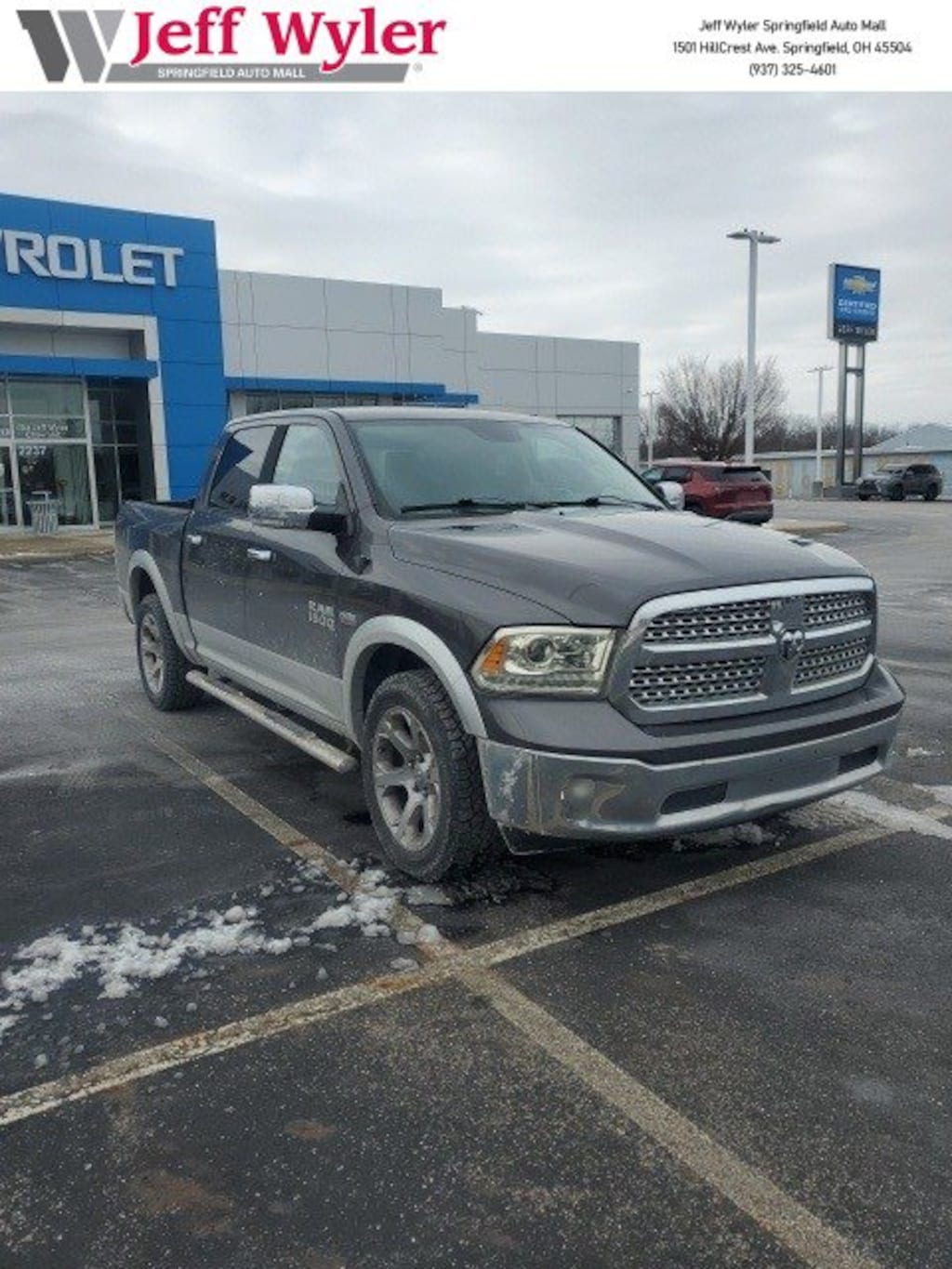 Jeff Wyler Springfield Auto Mall is honored to offer this great-looking 2015 Ram 1500 Laramie in Granite Crystal Metallic Clearcoat. Well equipped with: Quick Order Package 26H Laramie, 10 Speakers, 115V Auxiliary Power Outlet, 20" x 9" Chrome Clad Aluminum Wheels, 3.21 Rear Axle Ratio, 4-Wheel Disc Brakes, 8.4" Touchscreen Display, ABS brakes, Active Grille Shutters, Adjustable pedals, Air Conditioning, Alloy wheels, AM/FM radio, Audio memory, Auto-dimming door mirrors, Auto-dimming Rear-View mirror, Automatic temperature control, Brake assist, Bumpers: chrome, Center Hub, Compass, Delay-off headlights, Driver door bin, Driver vanity mirror, Dual front impact airbags, Dual front side impact airbags, Electronic Shift, Electronic Stability Control, Emergency communication system, Folding Flat Load Floor Storage, Front anti-roll bar, Front Center Armrest w/Storage, Front dual zone A/C, Front fog lights, Front reading lights, Front wheel independent suspension, Fully automatic headlights, Garage door transmitter, GPS Antenna Input, Harman Radio Manufacturer, Heated door mirrors, Heated Front Seats, Heated front seats, Heated steering wheel, High Back Seats, Illuminated entry, Integrated Voice Command w/Bluetooth, Leather steering wheel, Leather Trim 40/20/40 Bench Seat, Low tire pressure warning, Media Hub (SD, USB, AUX), Memory seat, Occupant sensing airbag, Outside temperature display, Overhead airbag, Overhead console, Panic alarm, ParkView Rear Back-Up Camera, Passenger door bin, Passenger vanity mirror, Pedal memory, Power 10-Way Memory Driver & 6-Way Passenger Seats, Power door mirrors, Power driver seat, Power passenger seat, Power steering, Power windows, Radio data system, Radio: Uconnect 8.4A AM/FM/SXM/BT, Rear 60/40 Split Folding Seat, Rear anti-roll bar, Rear seat center armrest, Rear step bumper, Remote keyless entry, Security system, SIRIUSXM Satellite Radio, Speed control, Split folding rear seat, Steering wheel mounted audio controls, Tachometer, Tilt steering wheel, Tip Start, Traction control, Trip computer, Turn signal indicator mirrors, Uconnect Access, Variably intermittent wipers, Ventilated Front Seats, Ventilated front seats, and Voltmeter. Awards: * Green Car Journal 2015 Green Truck of the Year * 2015 KBB.com 15 Best Family Cars * 2015 KBB.com Best Buy Awards FinalistBased on 2017 EPA mileage ratings. Use for comparison purposes only. Your mileage will vary depending on how you drive and maintain your vehicle, driving conditions and other factors. Reviews: * Supple ride; optional fuel-efficient diesel V6; excellent eight-speed automatic transmission; refined and quiet cabin; useful tech features. Source: EdmundsAsk about available certifications. Used vehicles 10 years of age or newer with less than 100,000 miles are eligible for the Wyler Assurance Program, but eligible vehicles must pass our reconditioning process and multi-point inspection. Provided the vehicle passes inspection, vehicles will be eligible for the 6 month/6,000 mile limited warranty. The 6 month/6,000 mile limited warranty is NOT available on AS-IS vehicles, wholesale vehicles, lease buyback/pass-thru vehicles or un-inspected vehicles. Note that this program can also apply to vehicles where the remaining factory coverage is less than 6 months or 6,000 miles. Please check the Federal Trade Commission (FTC) Buyers guide on the vehicle for full details as to whether or not warranty coverage may apply. Contact Dealer for additional details. The Wyler Assurance 6 month/6,000 Mile limited warranty ends 6 months from the date of the Retail Purchase Agreement (BUYERS ORDER) or when the vehicle's odometer registers 6,000 additional miles to the mileage listed on the BUYERS ORDER, whichever comes first. Your Deductible - The warranty holder on your contract pays the first $100 of each covered repair.