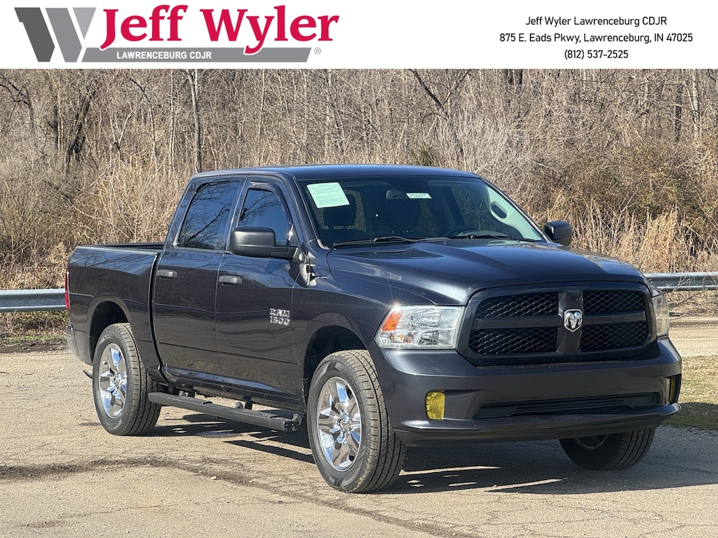 Jeff Wyler Chrysler Dodge Jeep of Lawrenceburg is delighted to offer this attractive 2018 Ram 1500 Express in Maximum Steel Metallic Clearcoat. Popular Equipment Group (1-Yr SiriusXM Radio Service, 40/20/40 Split Bench Seat, Cloth 40/20/40 Bench Seat, For More Info, Call 800-643-2112, Front Armrest w/3 Cupholders, Manual Adjust Seats, No Satellite Coverage w/HI/AK/PR/VI/GU, Rear Folding Seat, Remote Keyless Entry w/All-Secure, SiriusXM Satellite Radio, and Storage Tray), Quick Order Package 22J Express (17" x 7" Aluminum Wheels, Body Color Front Fascia, Body Color Grille, Body Color Rear Bumper w/Step Pads, Carpet Floor Covering, Center Hub, Delete Class IV Receiver Hitch, Delete Spray In Bedliner, Front Floor Mats, Front Fog Lamps, Ram 1500 Express, and Rear Floor Mats), 17" x 7" Steel Wheels, 3.21 Rear Axle Ratio, 4-Wheel Disc Brakes, 6 Speakers, ABS brakes, Active Grille Shutters, Air Conditioning, AM/FM radio, Audio Jack Input for Mobile Devices, Auto-dimming Rear-View mirror, Black Exterior Mirrors, Brake assist, Delay-off headlights, Driver door bin, Dual front impact airbags, Dual front side impact airbags, Electronic Shift, Electronic Stability Control, Exterior Mirrors w/Heating Element, Front & Rear Rubber Floor Mats, Front anti-roll bar, Front Center Armrest, Front wheel independent suspension, Fully automatic headlights, Heated door mirrors, Heavy Duty Vinyl 40/20/40 Split Bench Seat, Low tire pressure warning, Media Hub (USB, AUX), Occupant sensing airbag, Overhead airbag, ParkView Rear Back-Up Camera, Passenger door bin, Power door mirrors, Power steering, Power windows, Radio data system, Radio: 3.0, Rear anti-roll bar, Rear seat center armrest, Rear step bumper, Remote USB Port, Speed control, Tachometer, Tilt steering wheel, Tip Start, Traction control, Variably intermittent wipers, Voltmeter, and Wheels: 20" x 8" Aluminum Chrome Clad Our PRE-OWNED vehicles are put through a rigorous 167- POINT QUALITY ASSURANCE INSPECTION along with an average amount of over $1,400.00 SPENT to recondition each vehicle so we can be sure to deliver you the highest quality vehicle like you deserve! ***ONLINE PRICE DOES NOT INCLUDE WYLER FAMILY FIRST PACKAGE*** Stop by 4136 Shelbyville Road to see for yourself, or give us a call @ 502-897-3151 to schedule your test drive! Ask about available certifications.