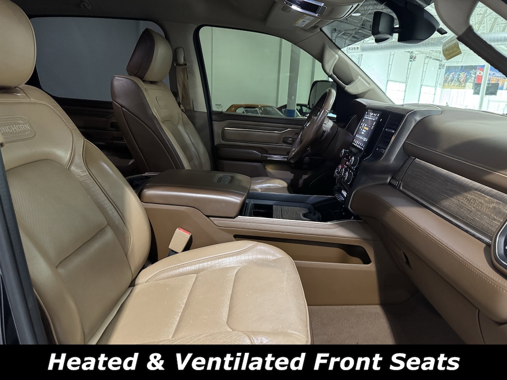 4WD/AWD, Bluetooth, Dual climate Control, Heated Leather Seats, Navigation, Push Button Start, Backup Camera, V8 Engine, CLEAN CARFAX, 1-Yr SiriusXM Guardian Trial, 10 Speakers, 3 Rear Seat Head Restraints, 3.21 Rear Axle Ratio, 33 Gallon Fuel Tank, 4 Way Front Headrests, 4-Wheel Disc Brakes, 48V Belt Starter Generator, ABS brakes, Adjustable pedals, Air Conditioning, Alloy wheels, AM/FM radio: SiriusXM, Apple CarPlay, Apple CarPlay/Android Auto, Audio memory, Auto High-beam Headlights, Auto-dimming door mirrors, Auto-dimming Rear-View mirror, Automatic temperature control, Brake assist, Bucket Seats, Bumpers: chrome, Compass, Delay-off headlights, Disassociated Touchscreen Display, Driver door bin, Driver Seat Memory, Driver vanity mirror, Dual front impact airbags, Dual front side impact airbags, Electronic Stability Control, Emergency communication system: SiriusXM Guardian, Front anti-roll bar, Front Bucket Seats, Front Center Armrest w/Storage, Front dual zone A/C, Front fog lights, Front reading lights, Front Seat Back Map Pockets, Front wheel independent suspension, Fully automatic headlights, Garage door transmitter, Genuine wood console insert, Genuine wood dashboard insert, Genuine wood door panel insert, Google Android Auto, GPS Antenna Input, GPS Navigation, HD Radio, Heated door mirrors, Heated Front Seats, Heated front seats, Heated rear seats, Heated Second Row Seats, Heated Steering Wheel, Heated steering wheel, Illuminated entry, Integrated Center Stack Radio, Leather steering wheel, Low tire pressure warning, Manufacturer's Statement of Origin, Memory seat, Navigation System, Occupant sensing airbag, Outside temperature display, Overhead airbag, Overhead console, Panic alarm, ParkView Rear Back-Up Camera, Passenger door bin, Passenger vanity mirror, Pedal memory, Power 4-Way Driver Lumbar Adjust, Power 4-Way Passenger Lumbar Adjust, Power 8-Way Driver & Passenger Seats, Power Chrome Trailer Tow Mirrors, Power door mirrors, Power driver seat, Power passenger seat, Power steering, Power windows, Premium Leather Seats w/Filigree, Quick Order Package 25K Longhorn, Radio data system, Radio: Uconnect 4C Nav w/8.4" Display, Rain sensing wipers, Rear 60/40 Folding Split Recline Seat, Rear anti-roll bar, Rear seat center armrest, Rear step bumper, Rear window defroster, Remote CD player, Remote keyless entry, Security system, SiriusXM Satellite Radio, SiriusXM Traffic Plus, SiriusXM Travel Link, Speed control, Split folding rear seat, Steering wheel mounted audio controls, Tachometer, Telescoping steering wheel, Tilt steering wheel, Traction control, Trailer Brake Control, Trailer Tow Group, Trailer Tow Mirrors, Trip computer, Turn signal indicator mirrors, Variably intermittent wipers, Ventilated Front Seats, Ventilated front seats, Voltmeter, Wheels: 20" x 9" Aluminum Painted/Polished. Clean CARFAX. 4WD 8-Speed Automatic HEMI 5.7L V8 Multi Displacement VVTRecent Arrival!15/21 City/Highway MPGAwards: * Motor Trend Automobiles of the year * 2019 KBB.com Best Auto Tech Awards * NACTOY 2019 North American Truck of the Year * 2019 KBB.com 10 Best Road Trip Cars * 2019 KBB.com 10 Favorite New-for-2019 CarsAsk about available certifications.