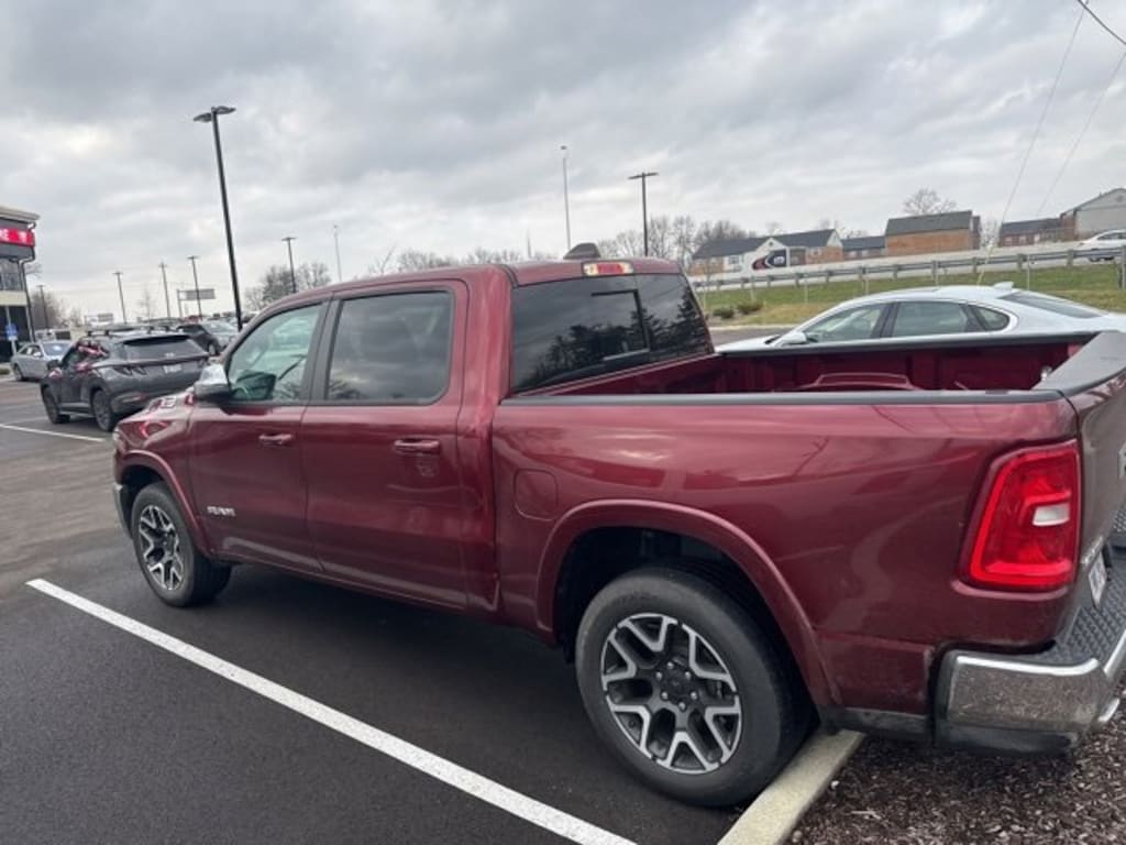 Jeff Wyler Eastgate Auto Mall is delighted to offer this terrific 2025 Ram 1500 Laramie in Delmonico Red Pearlcoat. Well equipped with: Laramie Level 1 Equipment Group (Rain Sensitive Windshield Wipers and Remote Tailgate Release), Quick Order Package 21H Laramie, 10 Speakers, 3 Rear Seat Head Restraints, 3.55 Rear Axle Ratio, 4 Way Front Headrests, 4-Wheel Disc Brakes, 4G LTE Wi-Fi Hot Spot, ABS brakes, Air Conditioning, Alloy wheels, AM/FM radio: SiriusXM with 360L, Apple CarPlay, Apple CarPlay/Android Auto, Audio memory, Auto High-beam Headlights, Auto Power-Folding Mirrors, Auto-dimming door mirrors, Auto-Dimming Exterior Driver Mirror, Auto-dimming Rear-View mirror, Automatic temperature control, Brake assist, Bumpers: chrome, Chrome Exterior Mirrors, Compass, Connected Travel & Traffic Services, Connectivity - US/Canada, Convex Wide-Angle Exterior Mirror Insert, Delay-off headlights, Driver door bin, Driver Seat Memory, Driver vanity mirror, Dual front impact airbags, Dual front side impact airbags, Electronic Stability Control, Exterior Mirrors Courtesy Lamps, Exterior Mirrors w/Heating Element, Exterior Mirrors w/Memory, Exterior Mirrors w/Supplemental Signals, Front anti-roll bar, Front Center Armrest w/Storage, Front dual zone A/C, Front fog lights, Front License Plate Bracket, Front reading lights, Front Seat Back Map Pockets, Front wheel independent suspension, Fully automatic headlights, Garage door transmitter, Google Android Auto, GPS Antenna Input, GPS Navigation, HD Radio, Heated door mirrors, Heated Front Seats, Heated front seats, Heated rear seats, Heated Steering Wheel, Heated steering wheel, Illuminated entry, Integrated Voice Command w/Bluetooth, Leather steering wheel, Leather Trim 40/20/40 Bench Seat, Low tire pressure warning, Manufacturer's Statement of Origin, Memory seat, Navigation System, Occupant sensing airbag, Outside temperature display, Overhead airbag, Overhead console, Panic alarm, ParkView Rear Back-Up Camera, Passenger door bin, Passenger vanity mirror, Power 2-Way Driver Lumbar Adjust, Power 2-Way Passenger Lumbar Adjust, Power Adjust 8-Way Front Passenger Seat, Power door mirrors, Power driver seat, Power passenger seat, Power steering, Power windows, Radio data system, Radio: Uconnect 5 Nav w/12.0" Display, RAM Grille Badge - Chrome, Rear anti-roll bar, Rear reading lights, Rear seat center armrest, Rear step bumper, Remote keyless entry, Security system, SiriusXM w/360L, Speed control, Split folding rear seat, Steering wheel mounted audio controls, Tachometer, Telescoping steering wheel, Tilt steering wheel, Traction control, Trip computer, Turn signal indicator mirrors, USB Host Flip, Variably intermittent wipers, Ventilated Front Seats, Ventilated front seats, Voltmeter, and Wheels: 20" x 9" Premium Paint/Polish. CARFAX One-Owner. Clean CARFAX. Awards: * Motor Trend Automobiles of the year Ask about available certifications. Used vehicles 10 years of age or newer with less than 100,000 miles are eligible for the Wyler Assurance Program, but eligible vehicles must pass our reconditioning process and multi-point inspection. Provided the vehicle passes inspection, vehicles will be eligible for the 6 month/6,000 mile limited warranty. The 6 month/6,000 mile limited warranty is NOT available on AS-IS vehicles, wholesale vehicles, lease buyback/pass-thru vehicles or un-inspected vehicles. Note that this program can also apply to vehicles where the remaining factory coverage is less than 6 months or 6,000 miles. Please check the Federal Trade Commission (FTC) Buyers guide on the vehicle for full details as to whether or not warranty coverage may apply. Contact Dealer for additional details. The Wyler Assurance 6 month/6,000 Mile limited warranty ends 6 months from the date of the Retail Purchase Agreement (BUYERS ORDER) or when the vehicle's odometer registers 6,000 additional miles to the mileage listed on the BUYERS ORDER, whichever comes first. Your Deductible - The warranty holder o