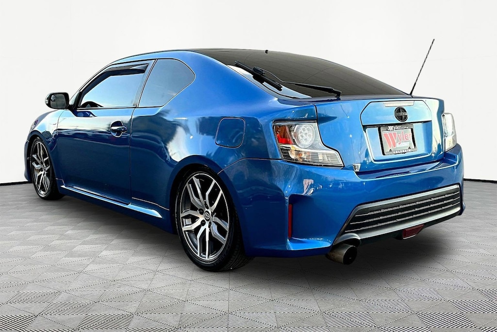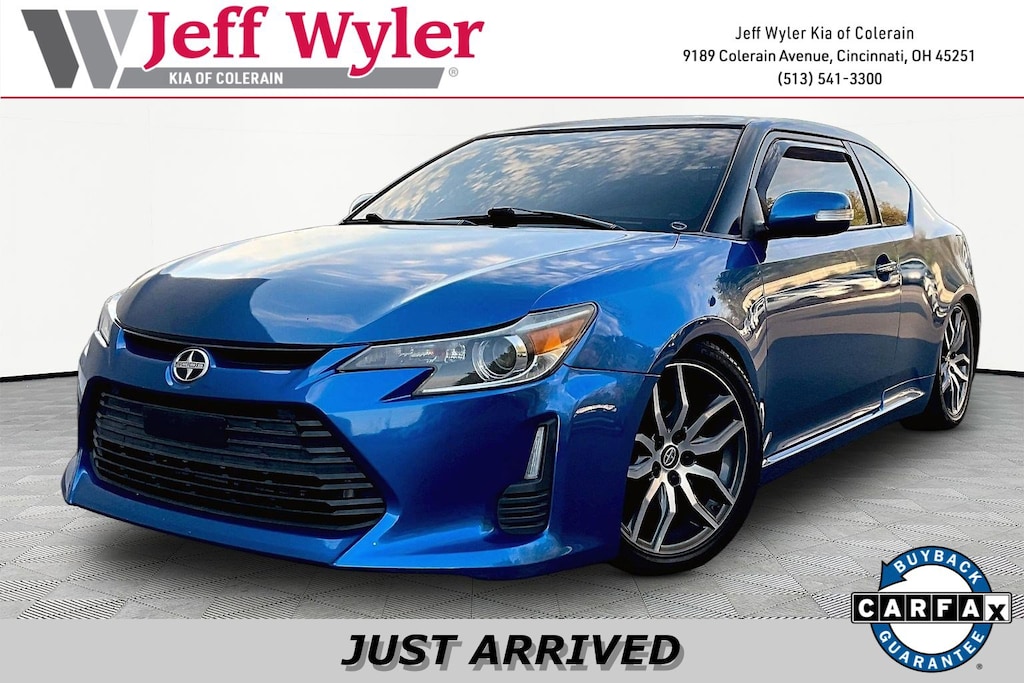 Jeff Wyler Kia of Colerain is excited to offer this attractive-looking 2016 Scion tC in Blue Streak Metallic. 4-Wheel Disc Brakes, 8 Speakers, ABS brakes, Air Conditioning, Alloy wheels, AM/FM radio, Anti-whiplash front head restraints, Brake assist, Bumpers: body-color, Driver door bin, Driver vanity mirror, Dual front impact airbags, Dual front side impact airbags, Electronic Stability Control, Fabric Upholstery, Four wheel independent suspension, Front anti-roll bar, Front Bucket Seats, Front Center Armrest, Front reading lights, Front Sport Bucket Seats, Illuminated entry, Knee airbag, Leather Shift Knob, Low tire pressure warning, Occupant sensing airbag, Outside temperature display, Overhead airbag, Panic alarm, Passenger door bin, Passenger vanity mirror, Power door mirrors, Power moonroof, Power steering, Power windows, Premium audio system: Pioneer, Radio data system, Radio: Pioneer Touch-Screen Display Audio, Rear anti-roll bar, Rear window defroster, Rear window wiper, Remote keyless entry, Speed control, Split folding rear seat, Steering wheel mounted audio controls, Tachometer, Telescoping steering wheel, Tilt steering wheel, Traction control, Turn signal indicator mirrors, Variably intermittent wipers, and Wheels: 18" x 7.5" Split 5-Spoke Alloy Our PRE-OWNED vehicles are put through a rigorous 167- POINT QUALITY ASSURANCE INSPECTION along with an average amount of over $1,400.00 SPENT to recondition each vehicle so we can be sure to deliver you the highest quality vehicle like you deserve! ***ONLINE PRICE DOES NOT INCLUDE WYLER FAMILY FIRST PACKAGE***